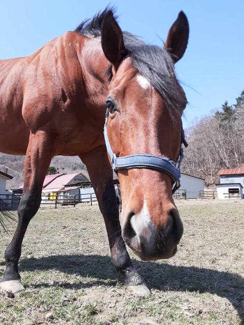脚を痛め、しばらく休養したのですが、レースに出ることは無理だろうとのことでふれあいファームにやってきました。