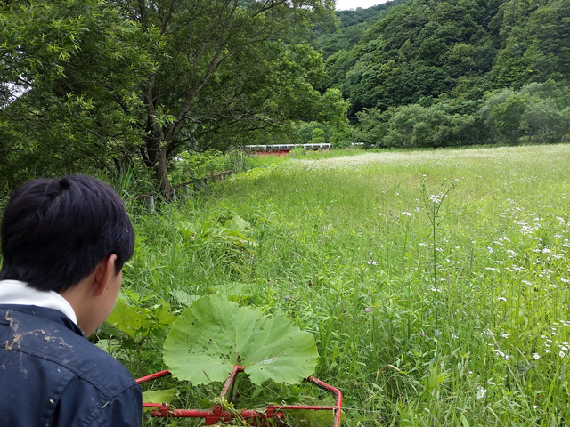 途中、草が生い茂って見えなかった土の盛り上がりに突っ込んで動かなくなったりしながら・・・・