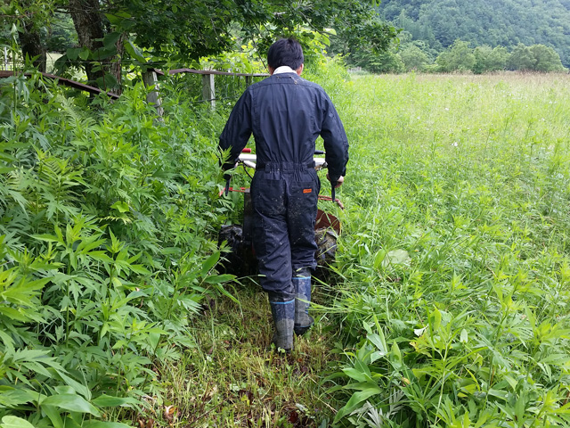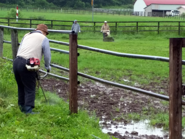 晴れの日が来るまで作業を待っているわけにもいかず多少の雨なら草刈です。