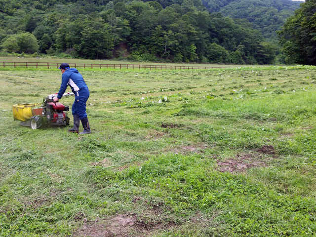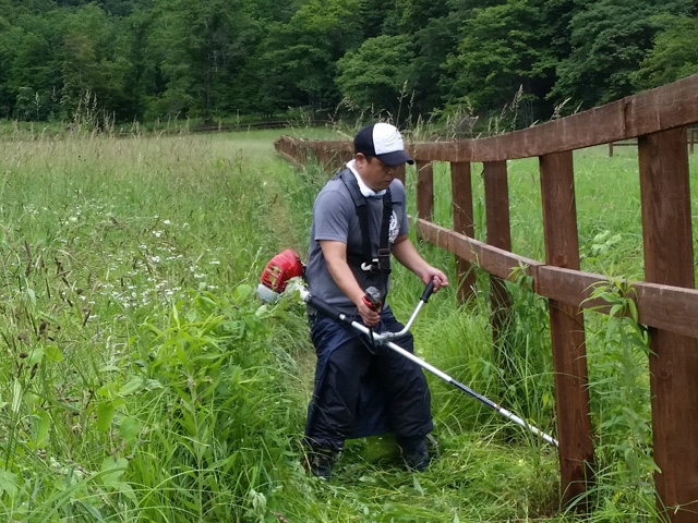 採草地を牧柵の沿って1周ぐるっと刈りこの内側をトラクターで刈ります。