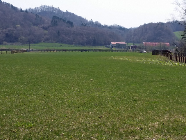 ↑写真奥の牧柵の先にみんなが放牧されています。