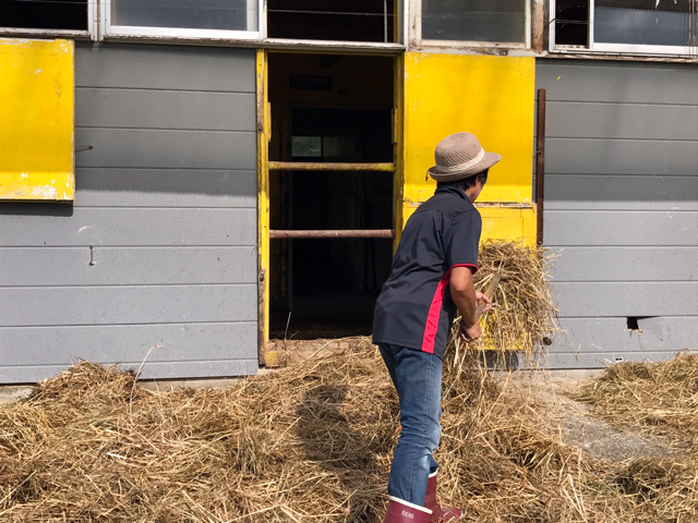 再利用できる寝藁は天日干しにします。↓