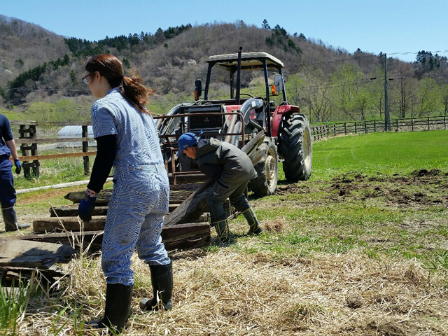 ふれあいファームの小さな巨人。地元の小学6年生と中学1年生。