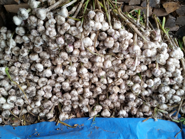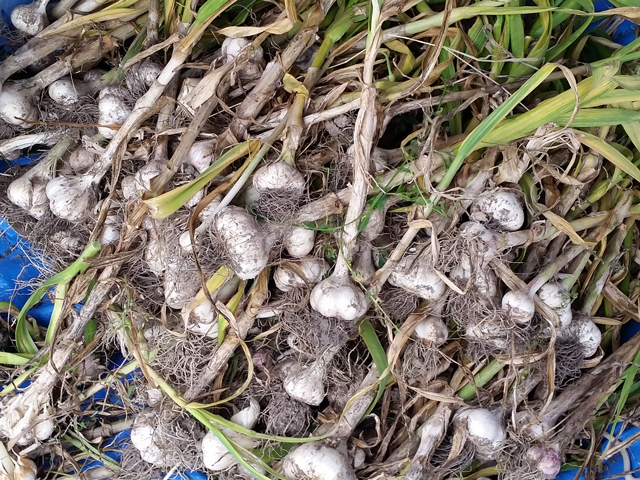 マルチを張ったところが風で飛ばされたりと、いろいろなアクシデントがありましたが、去年よりは良いにんにくが収穫できていると思います。