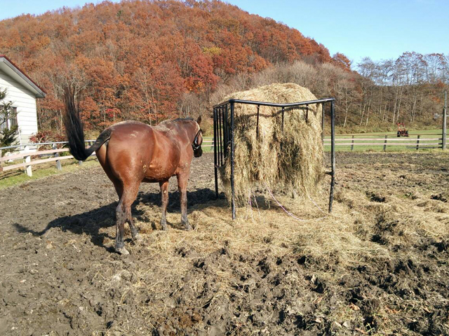 雪の季節到来の前に、水はけが悪くなってきた放牧地にサプソイラという機械を入れて、水はけを改善するための作業を行いました。