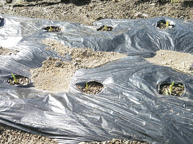 全部で11馬房。まずは、デコボコになった穴の周りを削り斜め平らにし、砂利と土を混ぜてプレートランマーで叩きました。