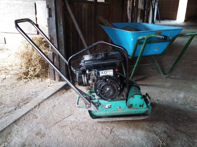そして色々検討した結果、セメントではなく砂利と土を叩いて地面と固めるのがいいのではないかとうことになり、下の機械を1日2030円で借りることにしました。
