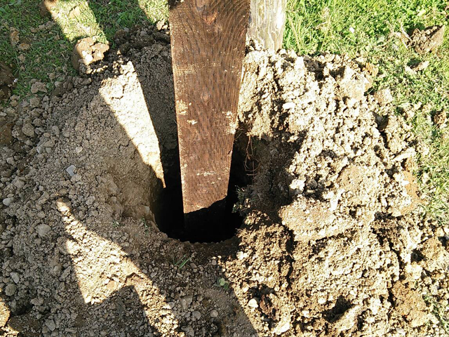 今回直す場所は硬い土だったので穴を掘って牧柵を打ちました。
