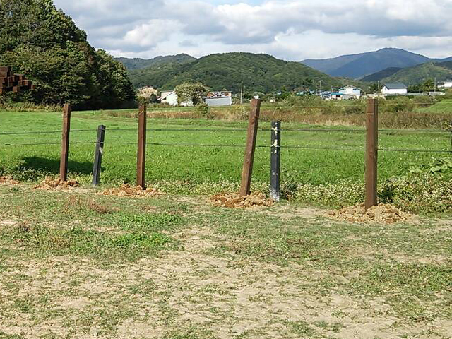 9月の終わりに隣の放牧地の牧柵も打ち直しをしました。