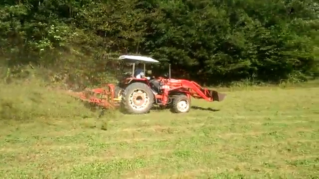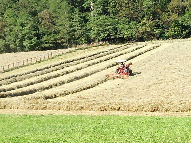 刈った牧草をトラクターでひっくり返し、乾燥させます。