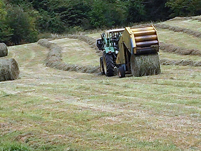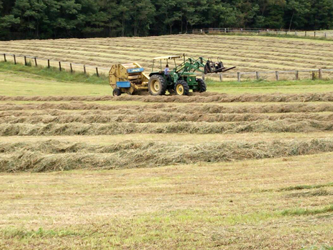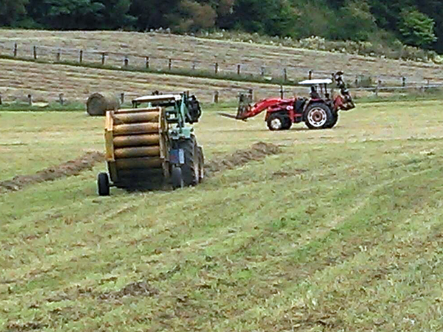 この作業は1番牧草と2番牧草と2度繰り返します。1番牧草は8月に刈り、今回は2番牧草です。
