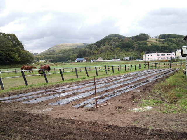 そして、耕してから3日後の昨日はマルチ(黒い穴の空いたビニール)を張って種を植える作業の予定。マルチを張った方が成長のためにも、雑草から守るためにも良いそうです。