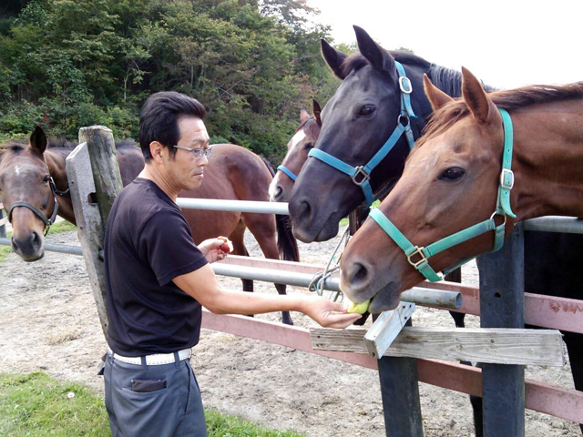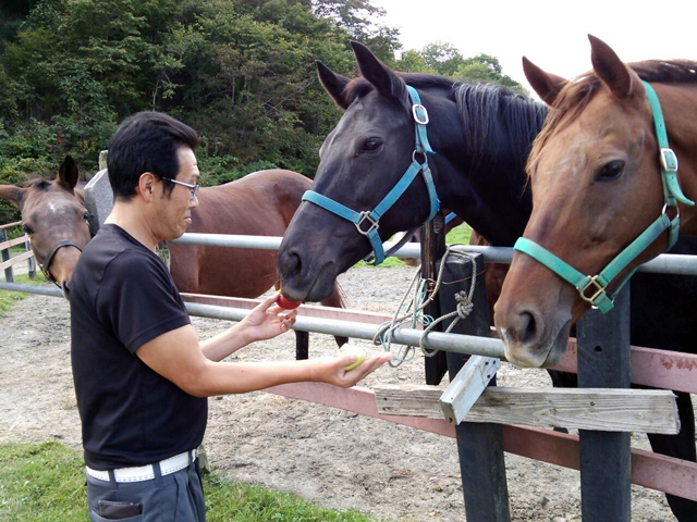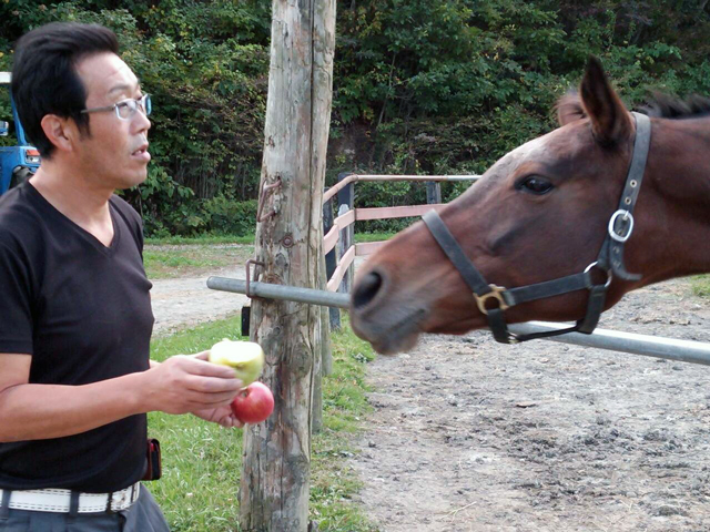 リンゴをあげているのは何かとお手伝いをしてくださる山口さん。一見、強面ですが・・・