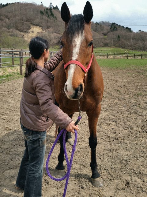 背中に噴霧器を背負い栄養素の入った水を散布していきます。その重さ約25kg。
