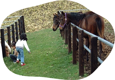 午後は、見学ツアーの時間です。訪れた方々は、馬たちとふれあい、餌やりを体験できます。スタッフが牧場の歴史や馬たちの物語を紹介し、訪問者にとって特別な時間を提供します。